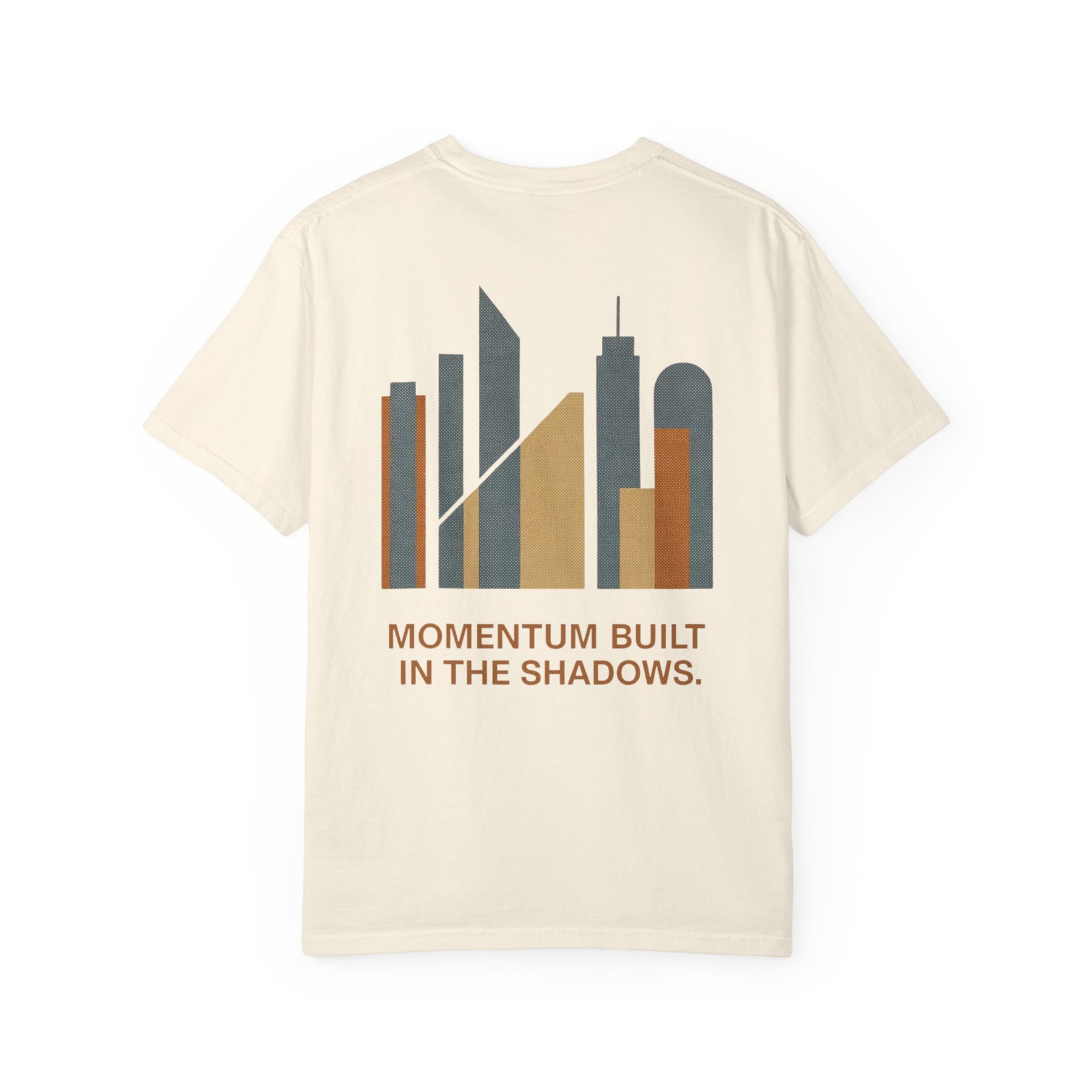 The City of Momentum Tee is designed for those who understand that real growth compounds slowly. Featuring a subtle front logo and a powerful architectural back graphic, it represents the unseen work that builds something greater over time.